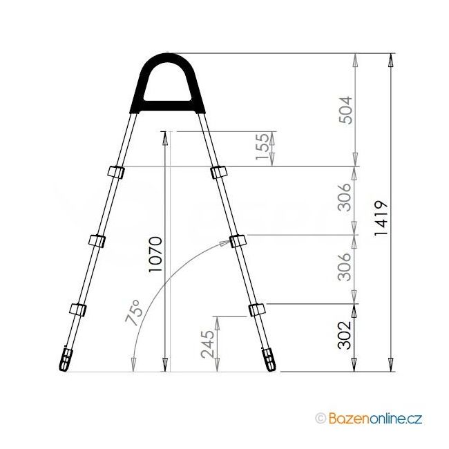 De totale hoogte van de trap is 1,42 m, de afzonderlijke treden staan 30 cm uit elkaar. Ze zijn ontworpen voor een zwembadwand met een maximale hoogte van 107 cm, de reserve is enkele centimeters.